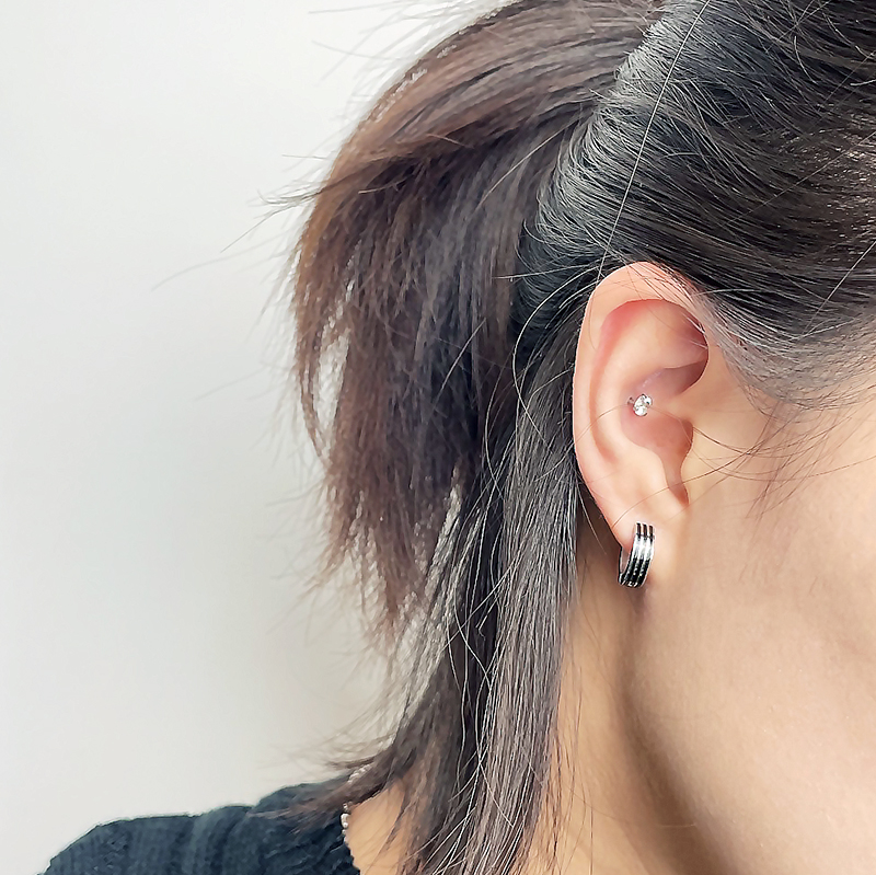 三鑲鑽鋼易扣耳環