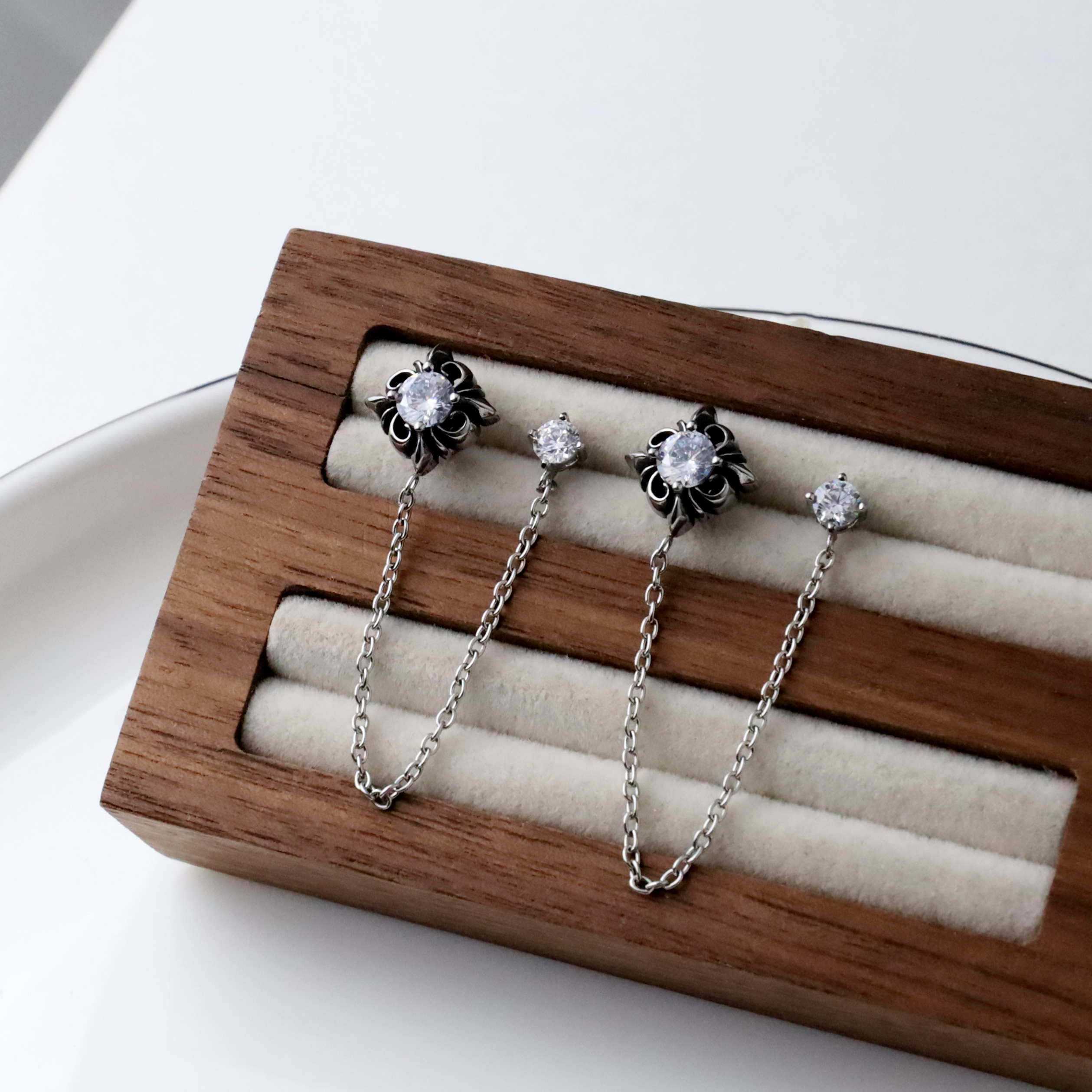 盒裝施華洛水鑽耳針/鎖針