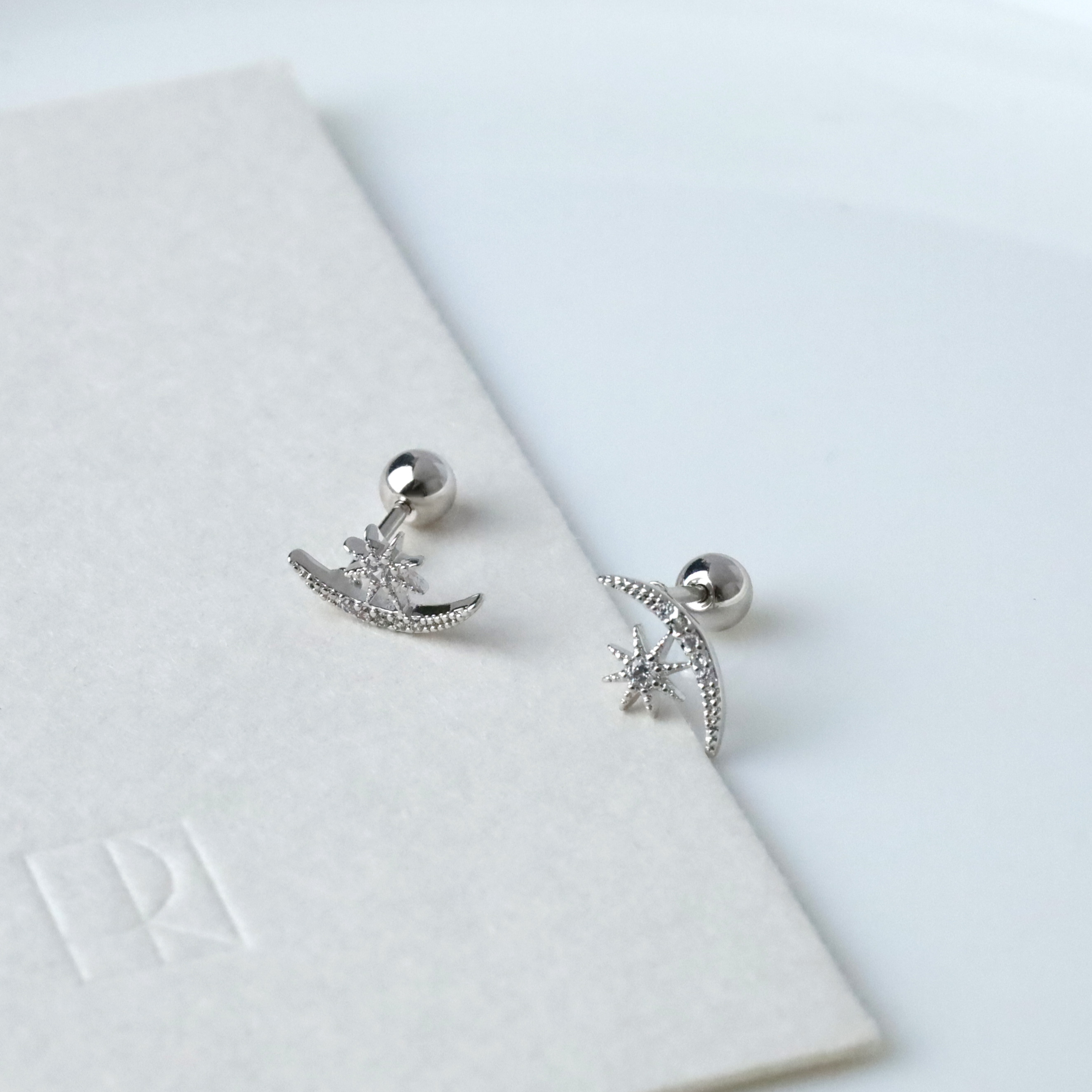 月牙星空鎖針耳環