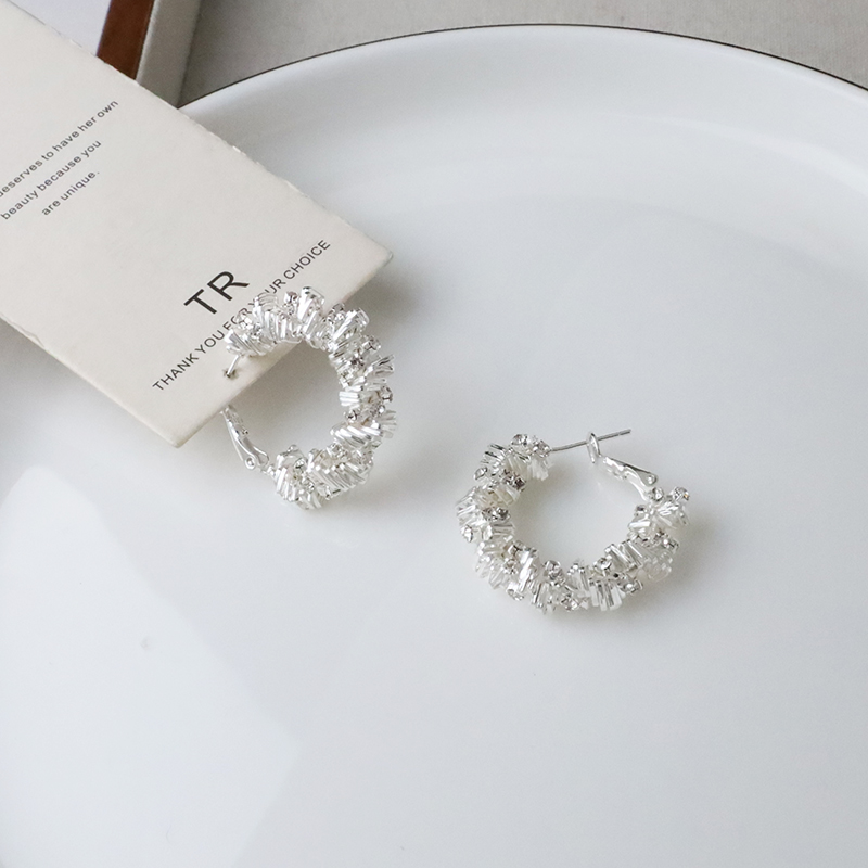 曲線鑽砂C型耳環