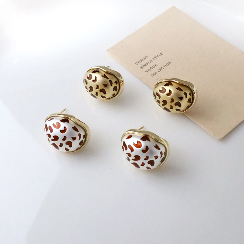 滾邊豹紋蛋型耳環