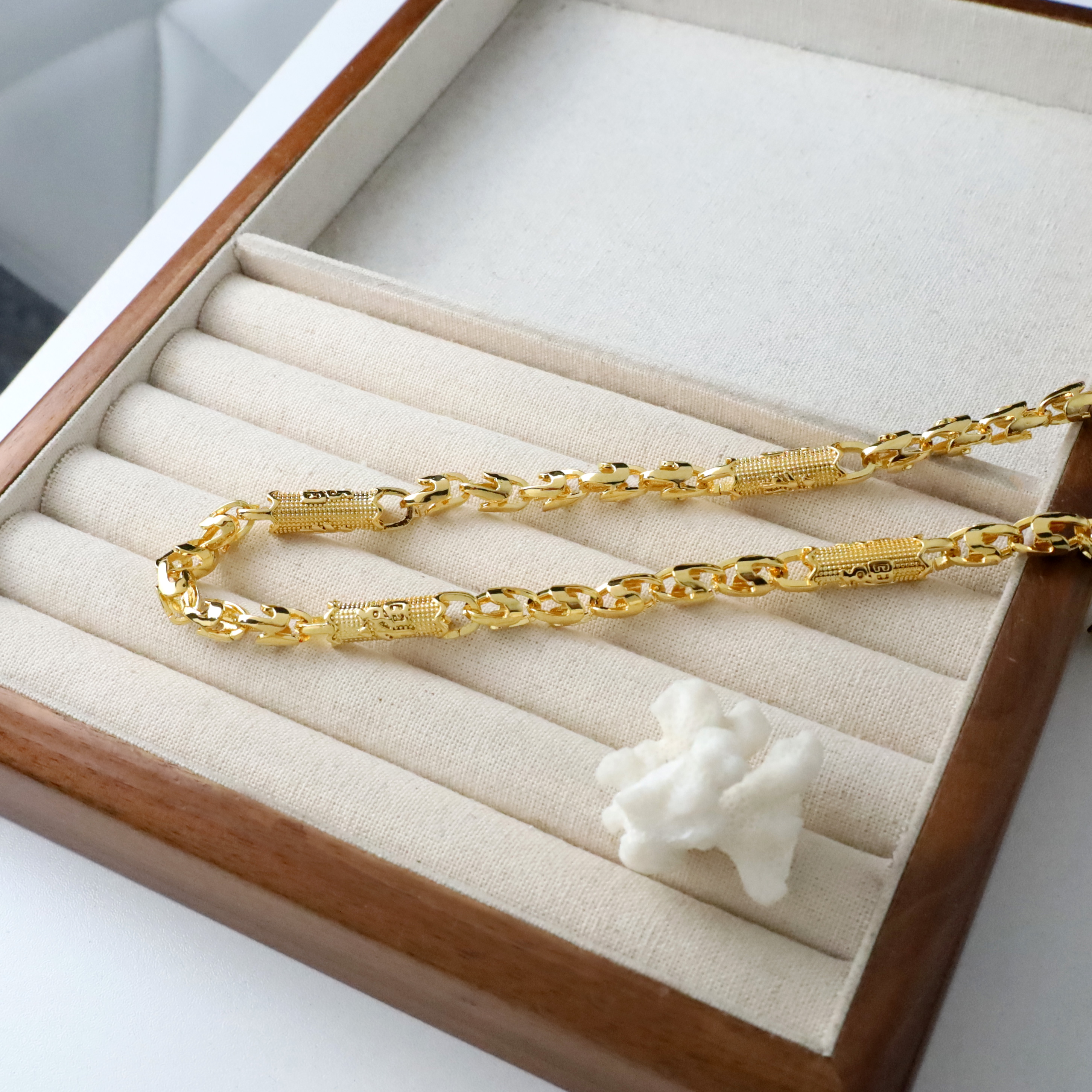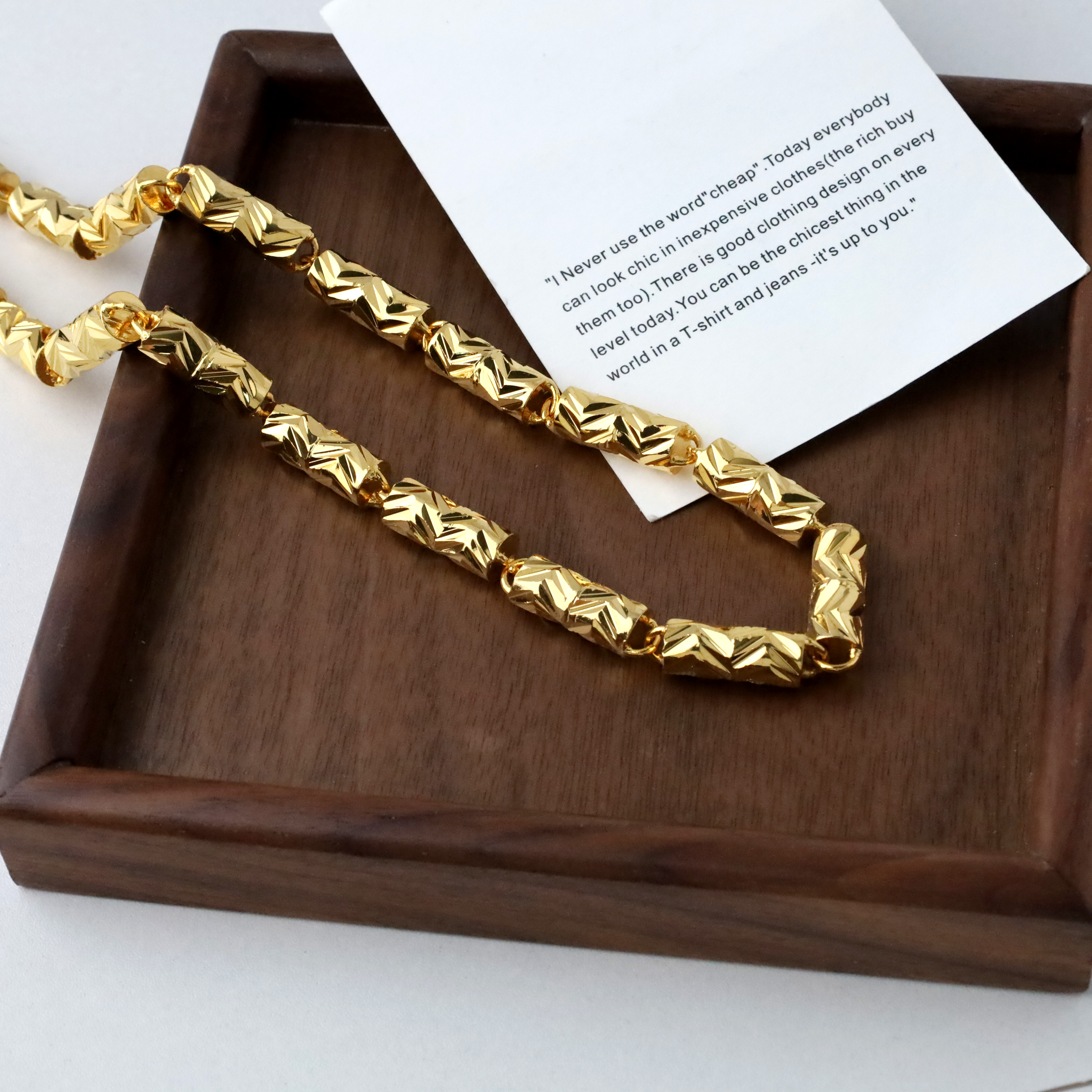 斜切刻紋圓柱沙金項鍊-W扣