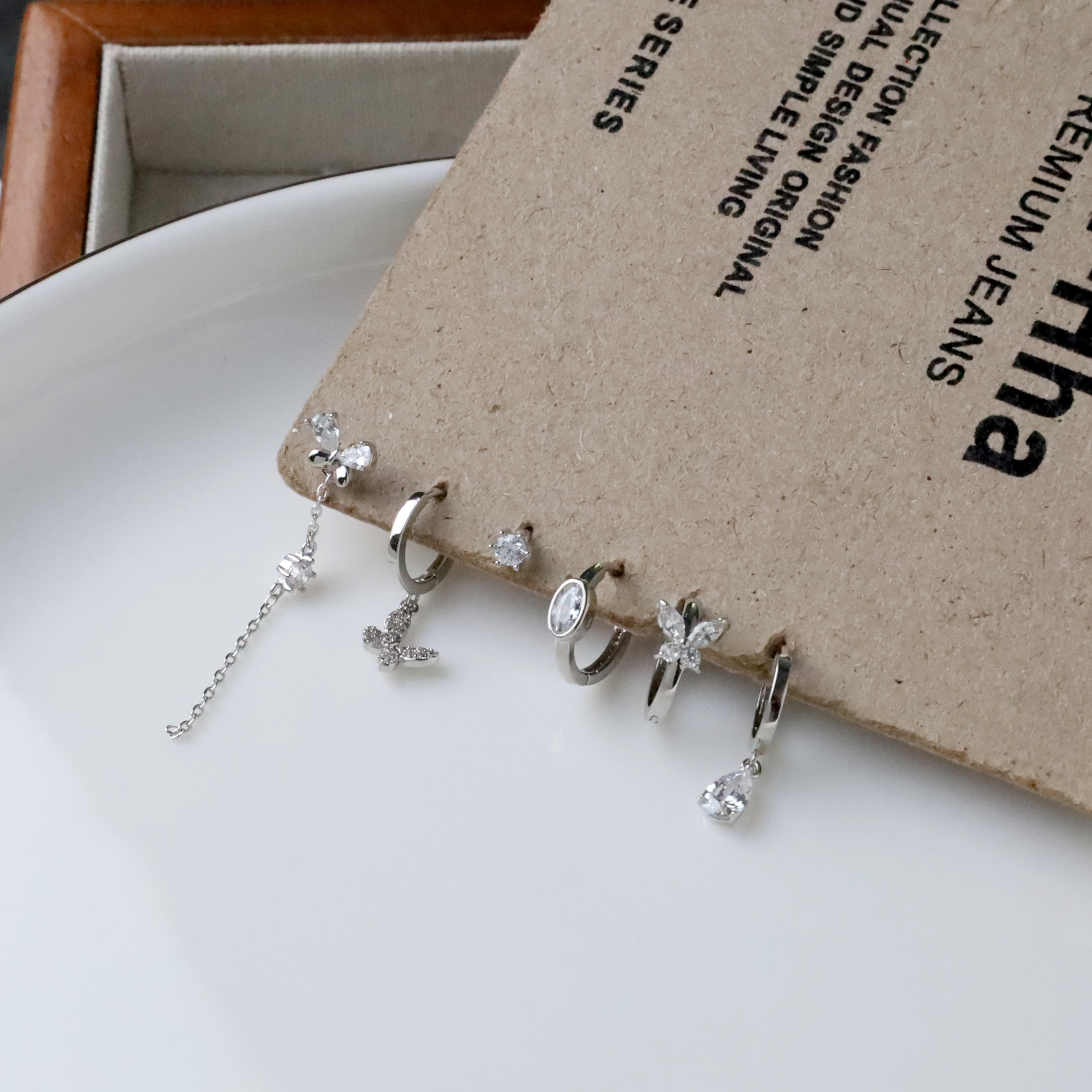 盒裝施華洛水鑽耳針/鎖針