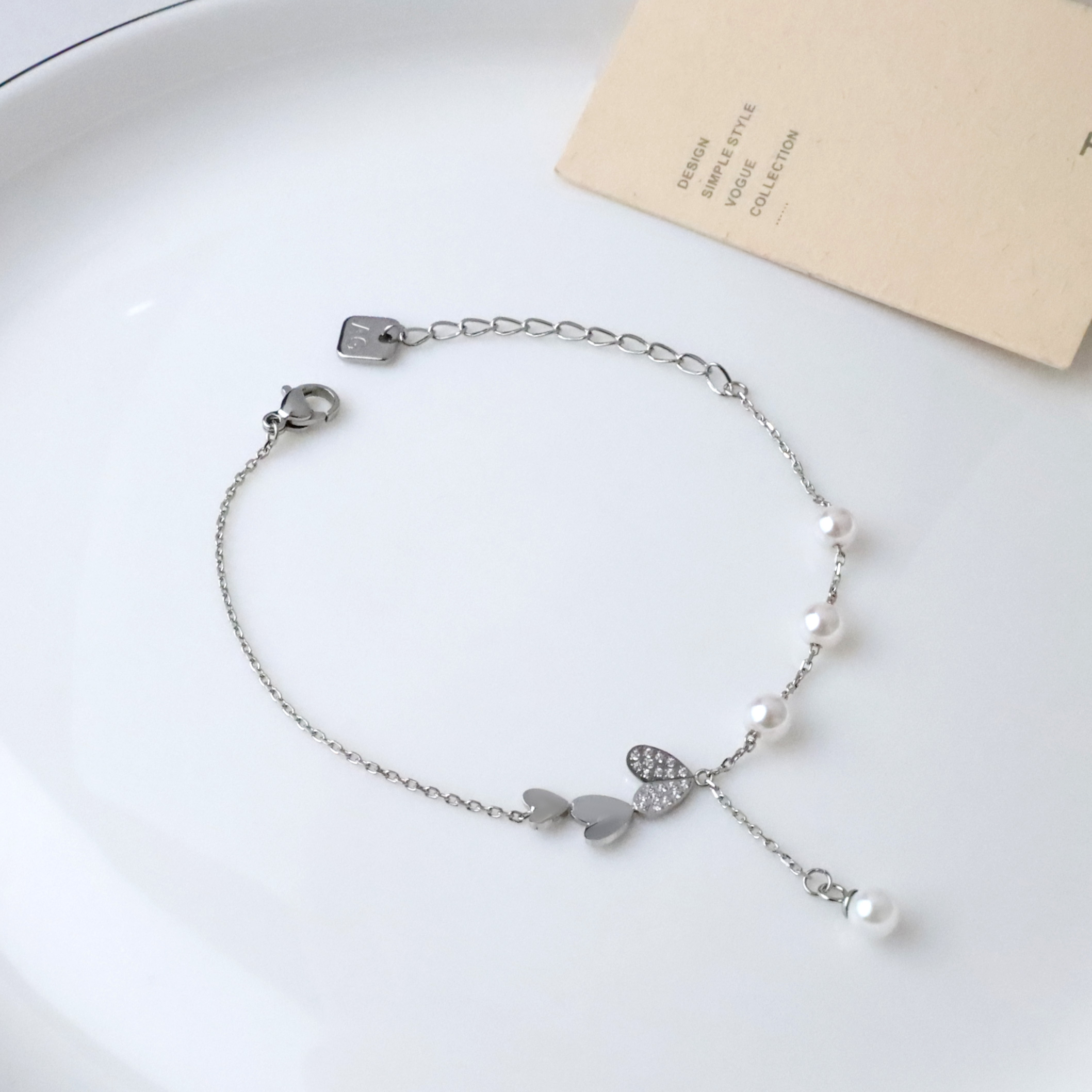俏麗連續珍珠愛心垂吊手鍊
