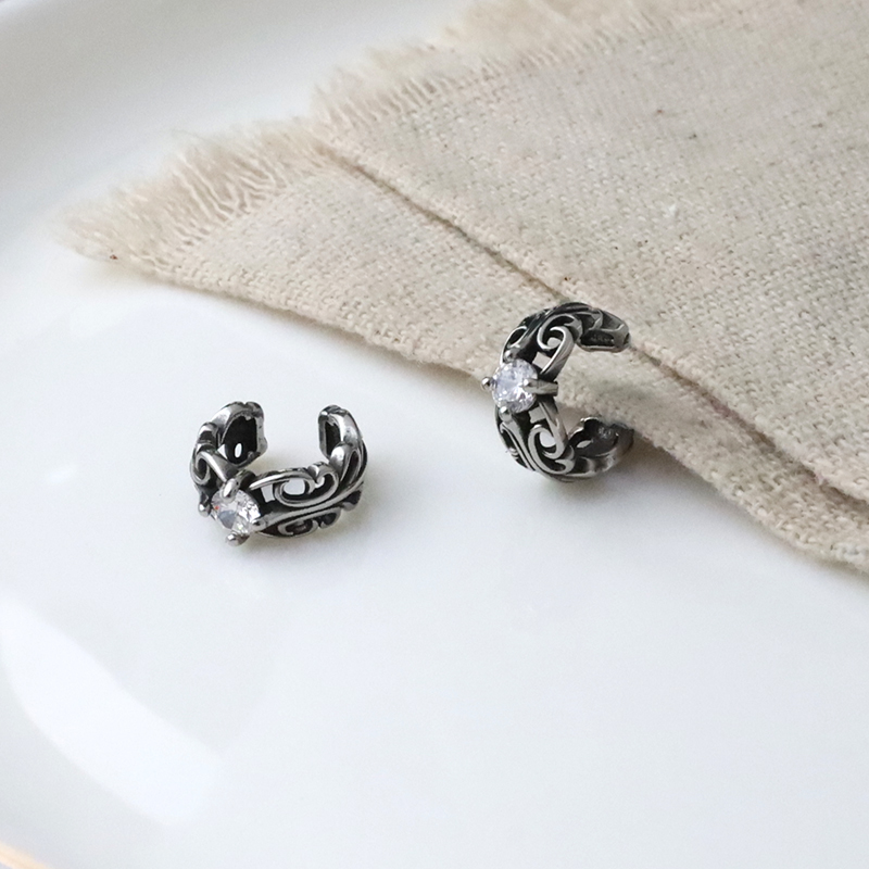 鑲鑽刻花圖騰C圈耳貼
