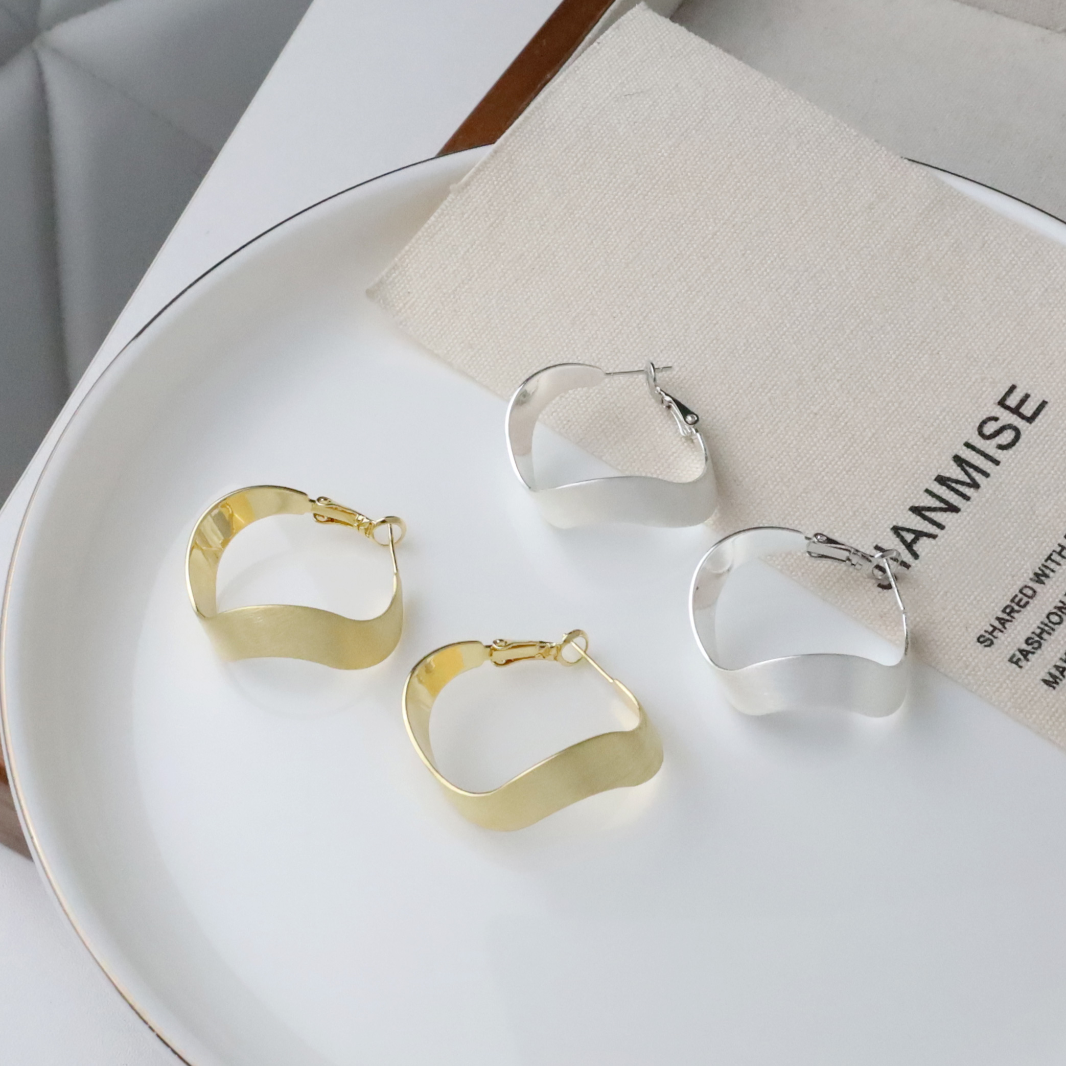 耳掛斜線耳環