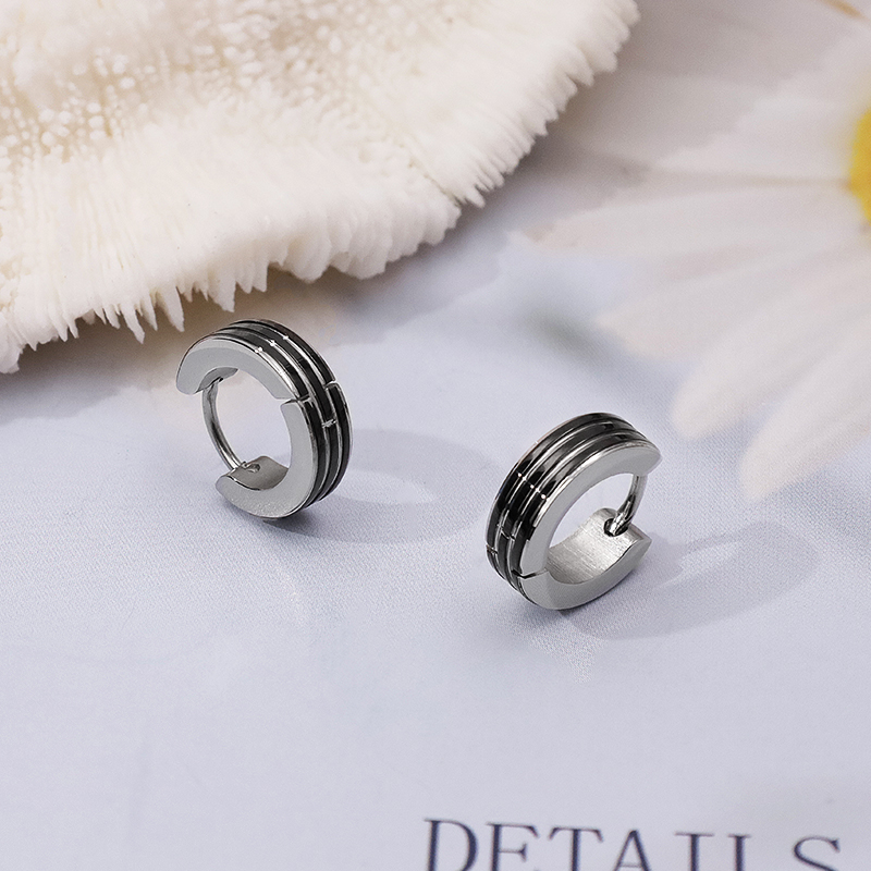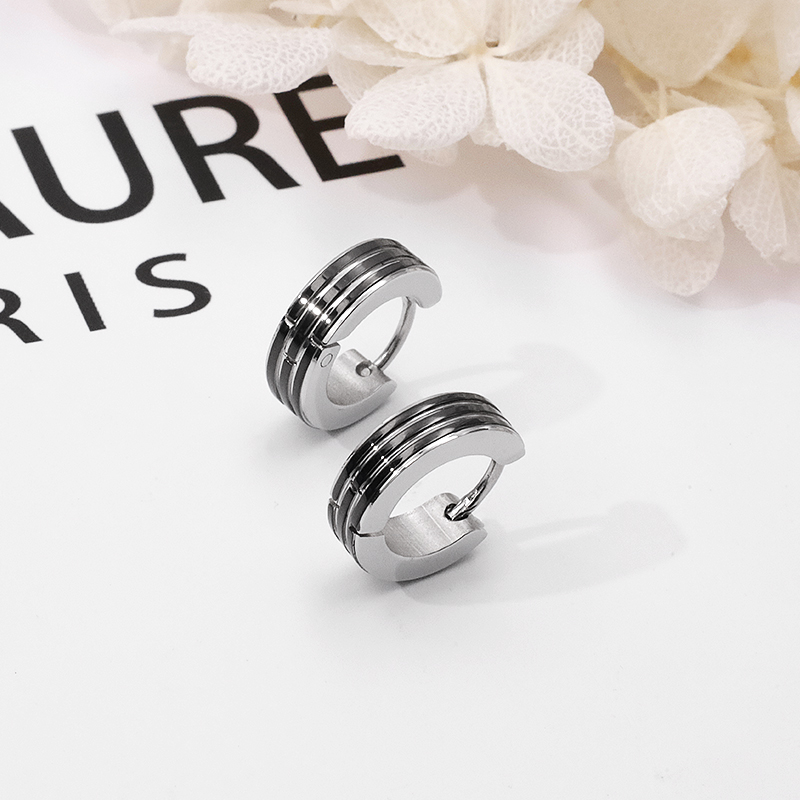 雙色條紋鋼易扣耳環