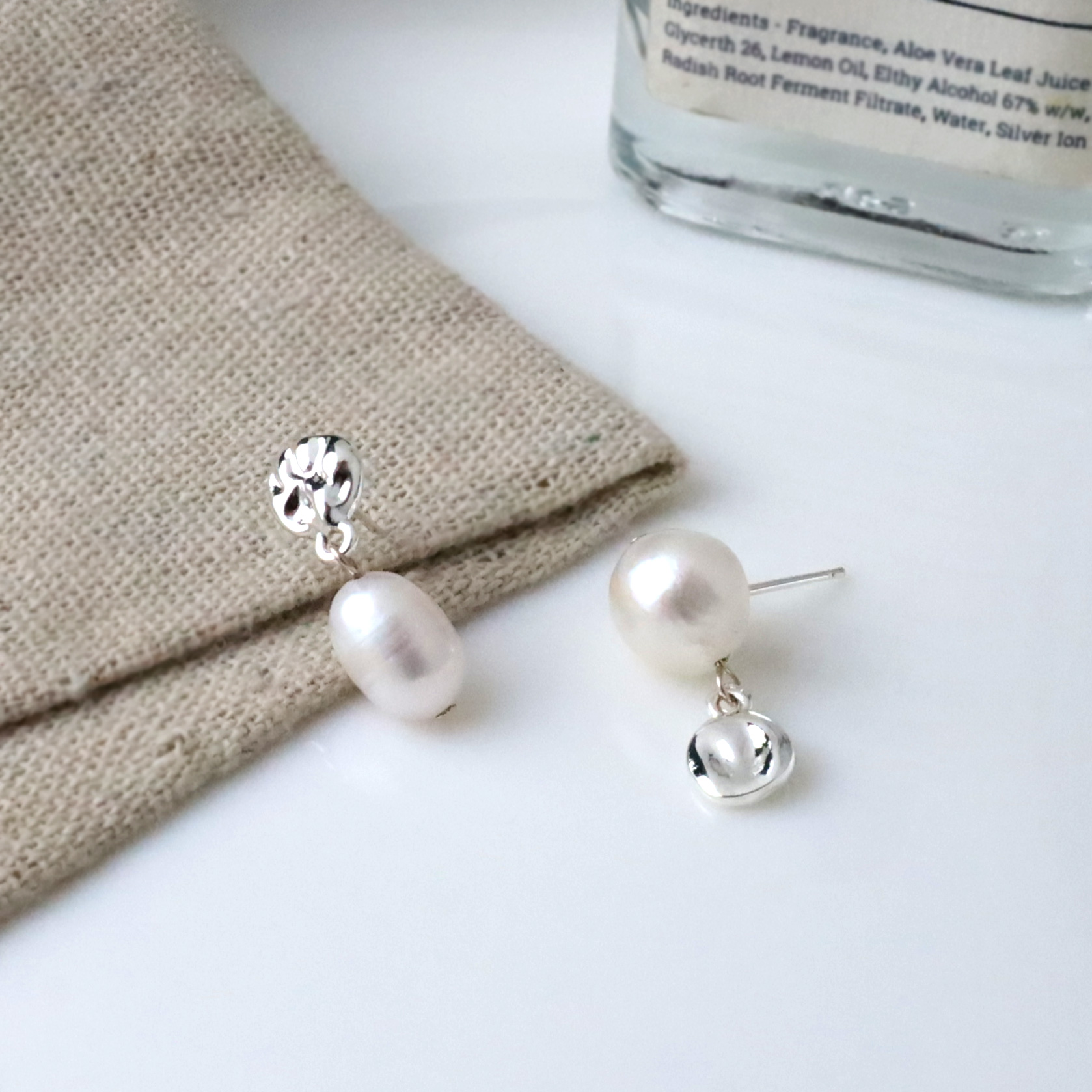 天然珍珠不對稱敲打垂吊耳環