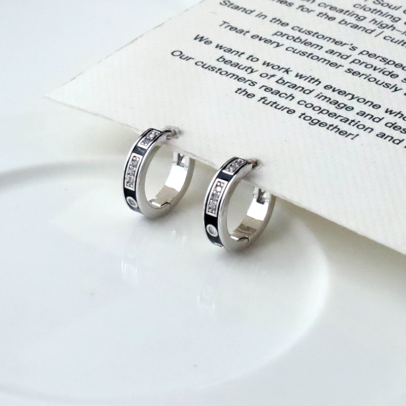 黑底幾何鑲鑽易扣耳環