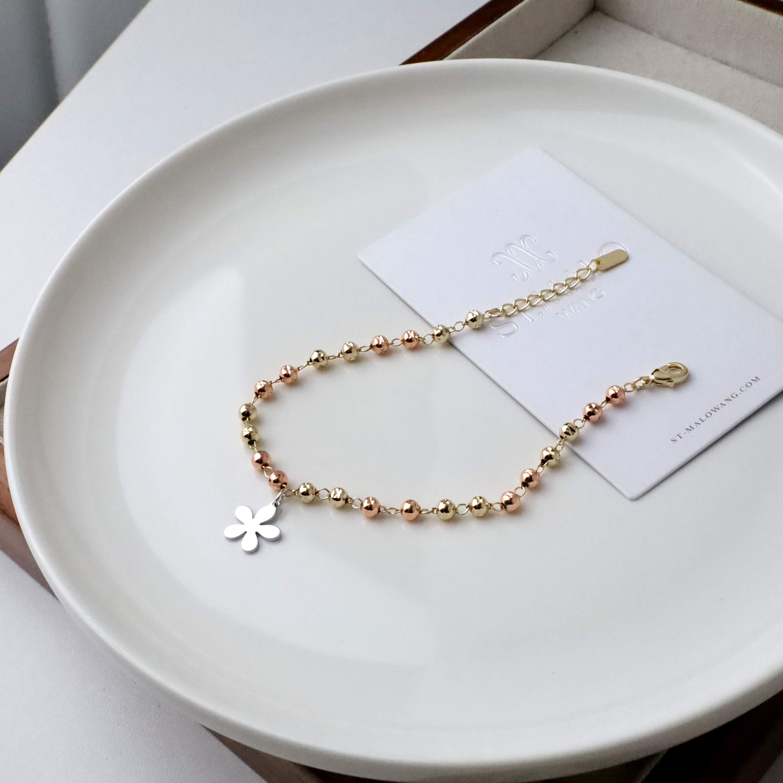 4mm垂吊花雙色刻花珠珠手鍊