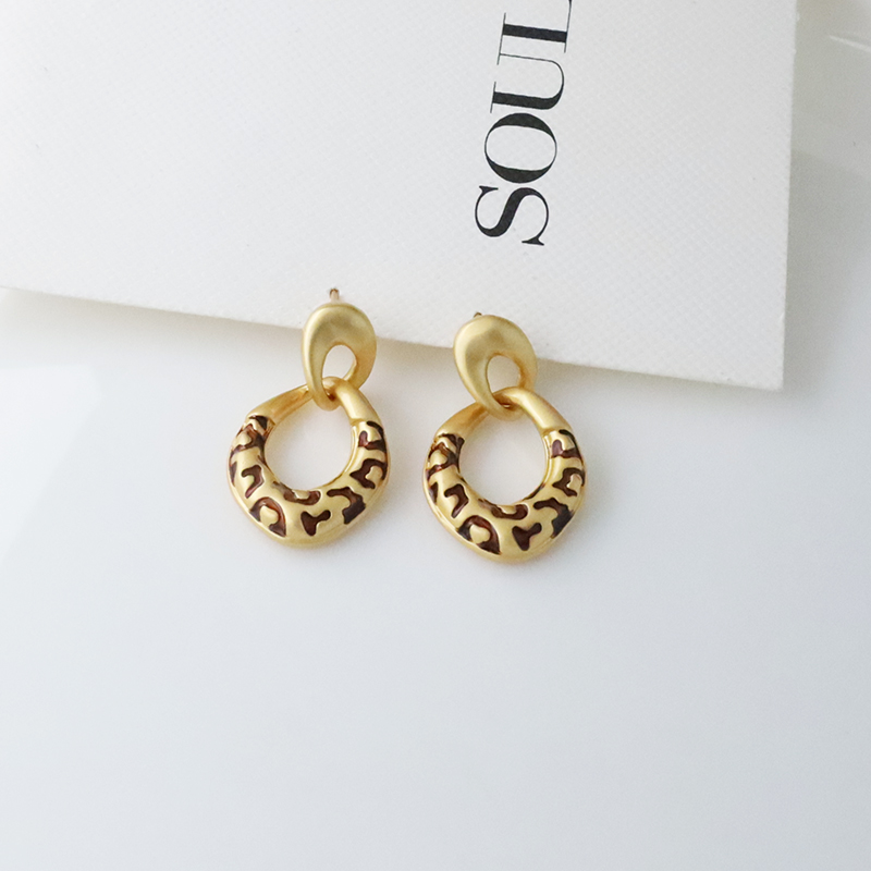 雙圈霧面豹紋耳環