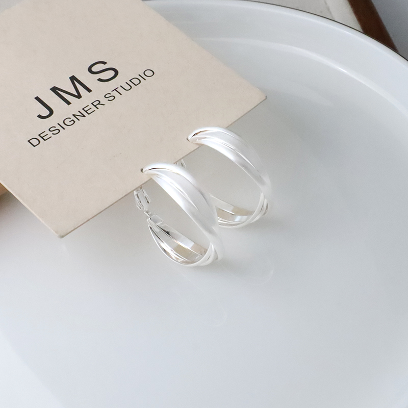 霧面三線交錯圈圈耳環