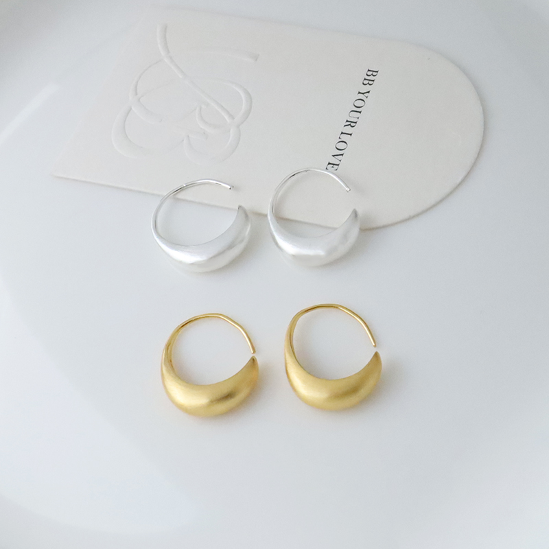 霧面拉絲水滴C型耳環