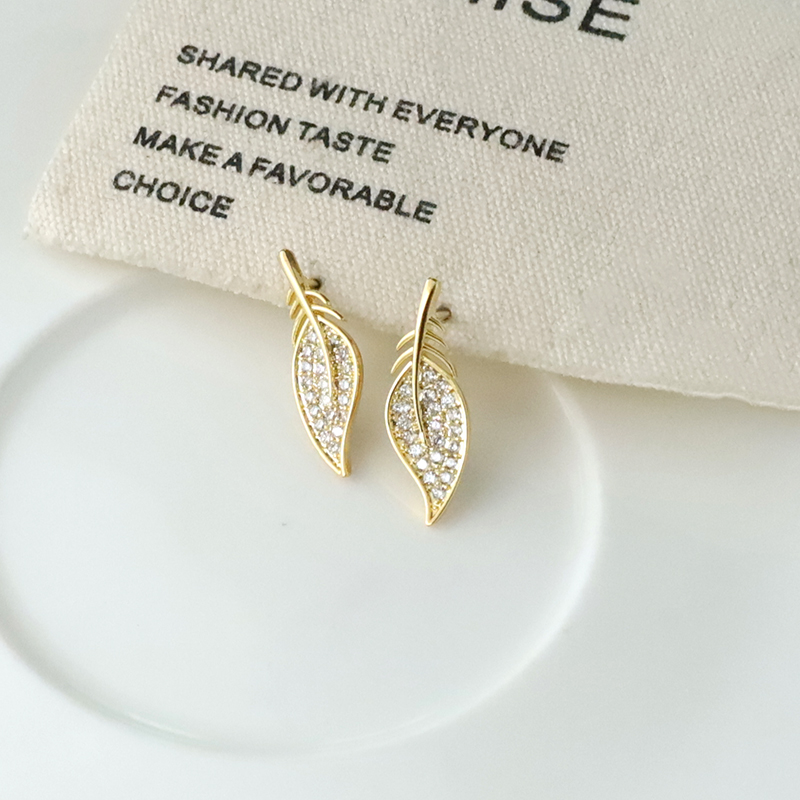 晶鑽羽毛貼耳.銀針耳環