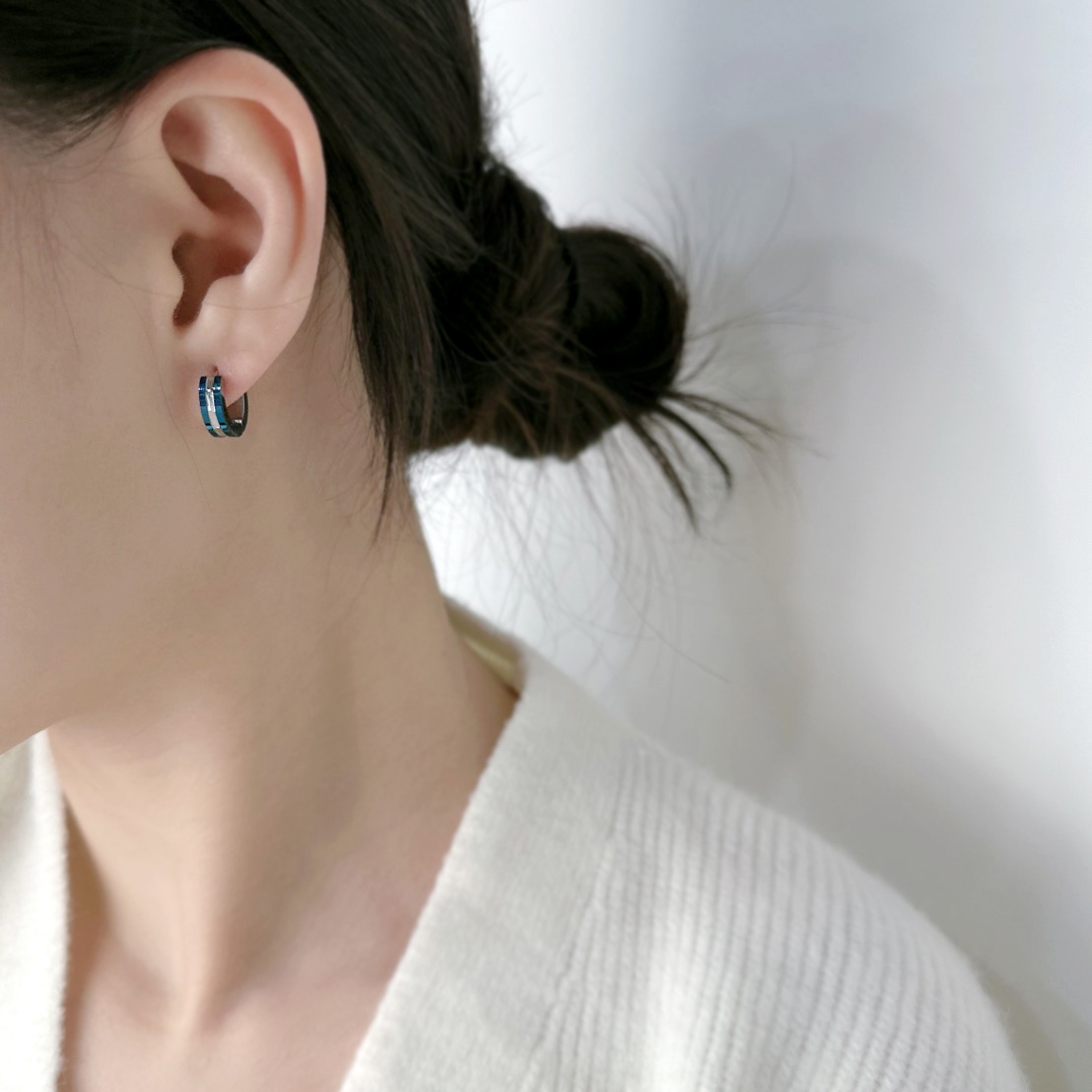 藍邊節式鋼易扣耳環