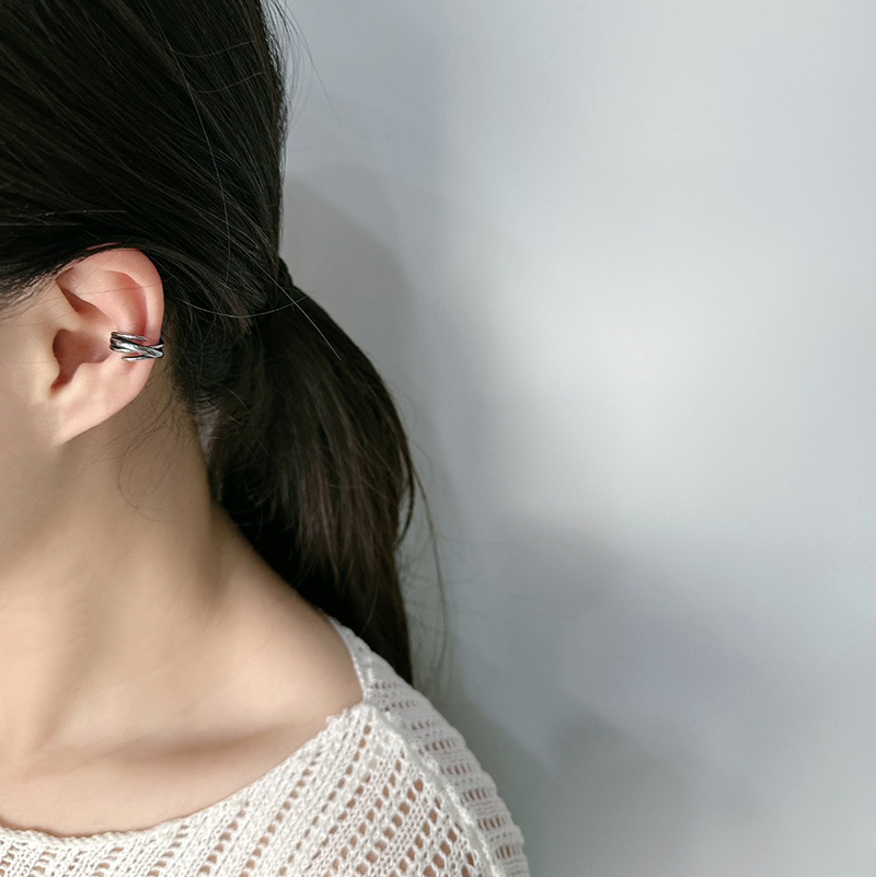 纏繞交錯夾式耳環 交錯 耳骨夾 硫化