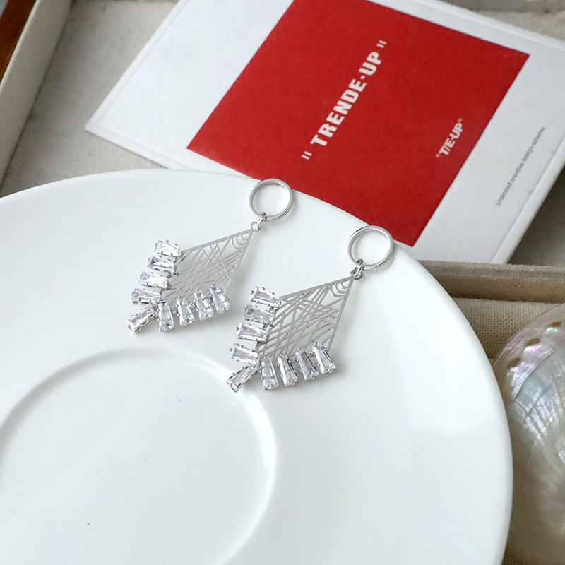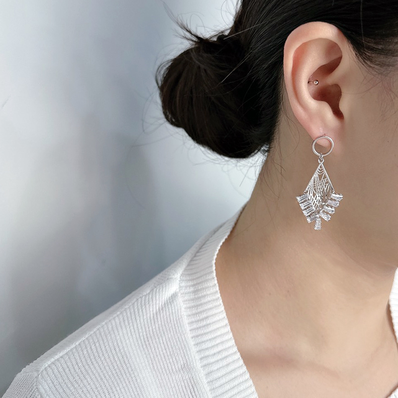 簍空菱形晶鑽耳環