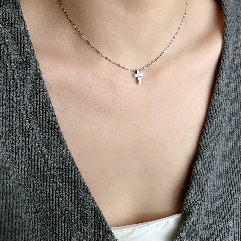 迷你鑲鑽十字架套鍊 (鑽十字套鍊-點焊)