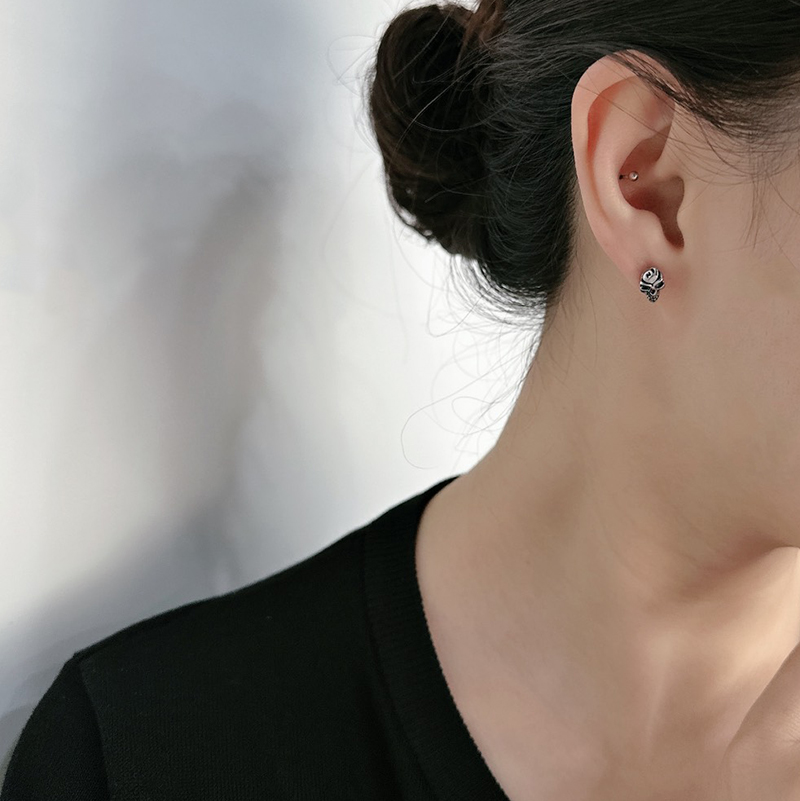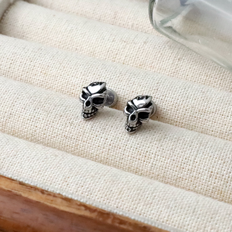 海盜骷髏螺旋鎖式鎖針耳環