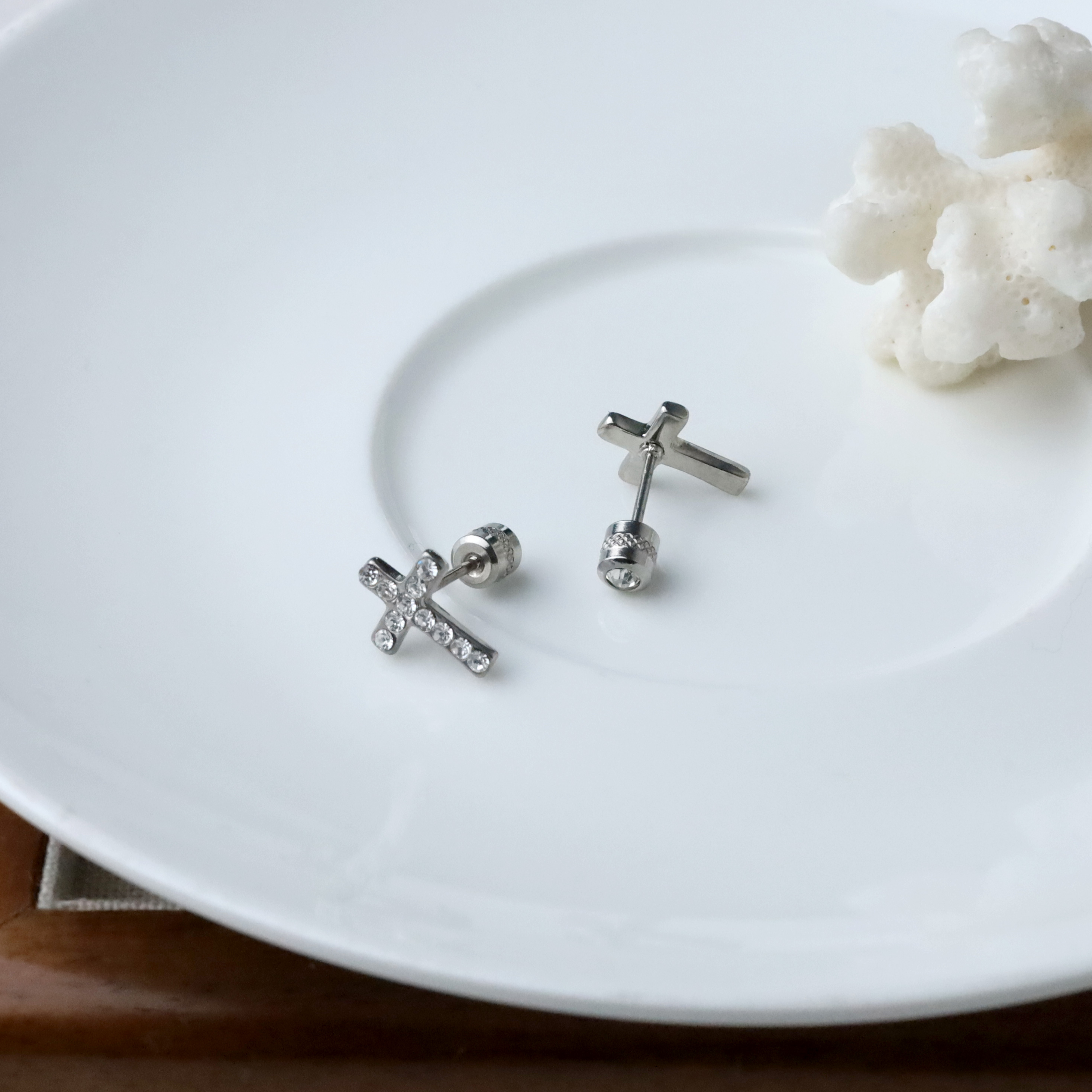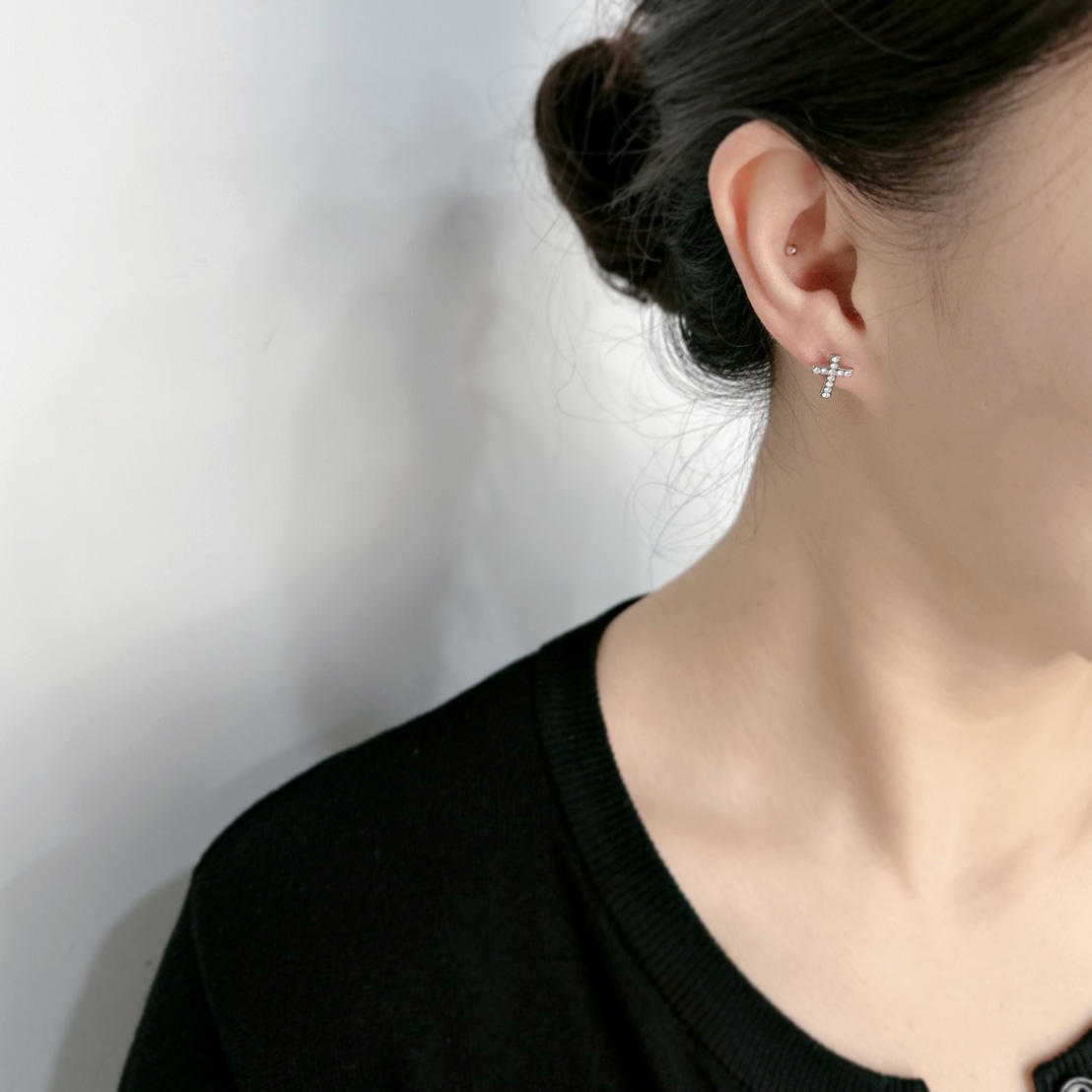 十字架彩鑽全鋼鎖針.施華洛水鑽(盒裝/一對)