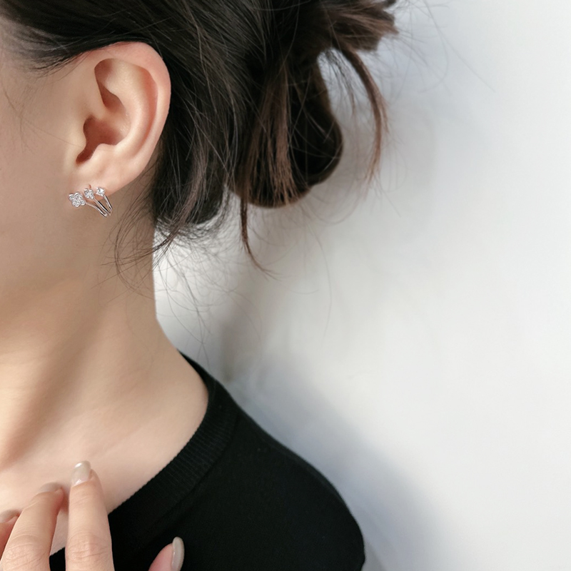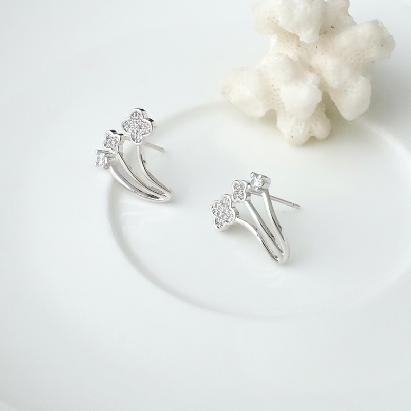 幸運草小花三線耳貼.銀針耳環
